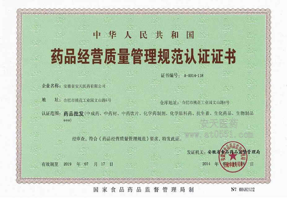 新版GSP認(rèn)證證書